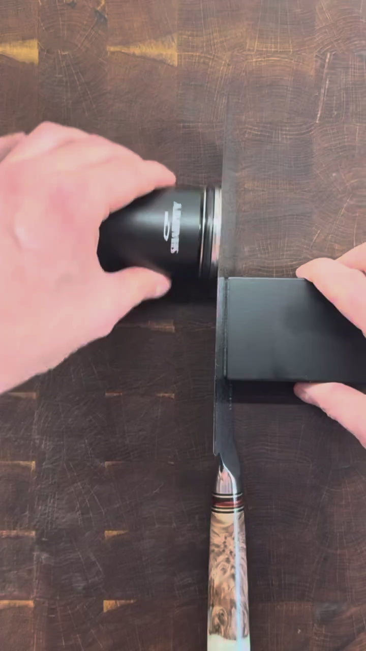 Denna knivslipningssats kan se enkel ut, men den är otroligt mångsidig. Den är perfekt för fina skärningar som sushi, sashimi, damaskusstålsknivar och knivar i högkolstål. Välj bara lämplig vinkel, håll bladet på plats med det magnetiska handtaget och rulla sedan kniven fram och tillbaka tills den är vass. Använd slutligen polerskivan i andra änden för att avsluta eggen.
